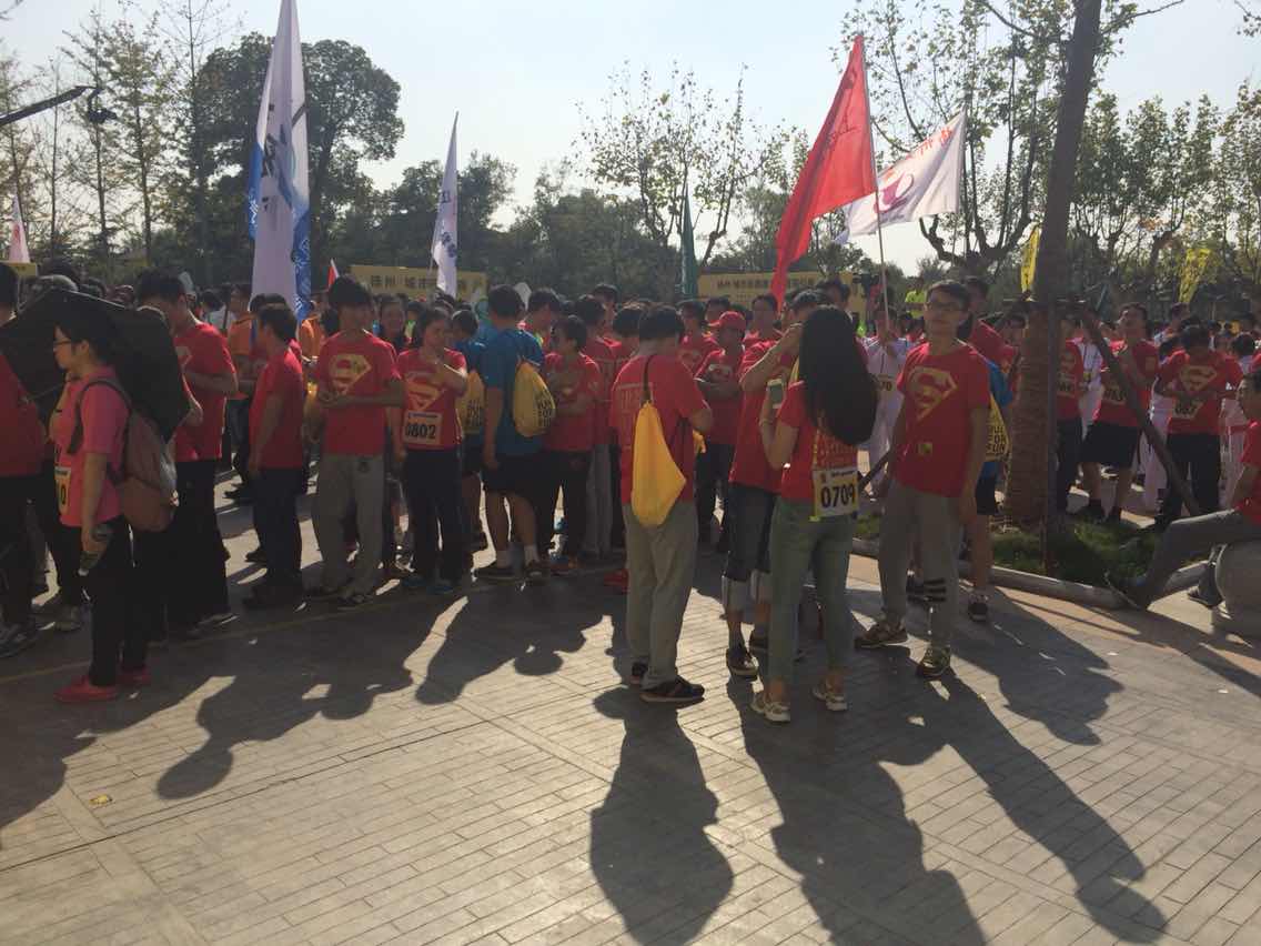 2014揚(yáng)州·城市樂(lè)跑賽在揚(yáng)州宋夾城體育公園盛大舉行。此次活動(dòng)匯聚揚(yáng)州政府機(jī)關(guān)、企事業(yè)單位、各界媒體、金融機(jī)構(gòu)、建筑單位等共計(jì)73個(gè)單位,約1400人報(bào)名參加。我院王院長(zhǎng)帶領(lǐng)“超人”團(tuán)隊(duì),90多人參與了此次活動(dòng),活動(dòng)包括賽前熱身、4.3公里不計(jì)時(shí)樂(lè)跑、賽后頒獎(jiǎng)等環(huán)節(jié),獲得主辦方頒發(fā)的最具人氣獎(jiǎng)!