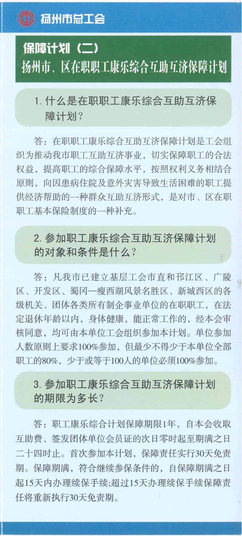 揚州市區(qū)職工互助互濟會保障計劃